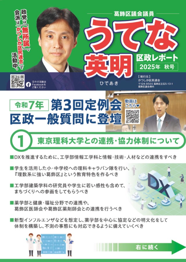 事務所:葛飾区堀切5-48-5 TEL&FAX:03-3690-8320 事務所:葛飾区堀切5-48-5 TEL&FAX:03-3690-8320 ホームページ Facebook Instagram X 資料 2025.09.242025.10.26 資料 区政レポート 2025年 秋号 区政レポート 2025年 春号 区政レポート 2024年 冬号 区政レポート 2024年 春号 区政レポート 2024年 新春号 区政レポート 2023年 春号 区政レポート 2023年 新春号 区政レポート 2022年 春号 区政レポート 2021年 秋号 区政レポート 2021年 春号 区政レポート 2021年 新春号 区政レポート 2020年 夏号 区政レポート 2020年 春号 区政レポート 2019年 秋号 区政レポート 2019年 新春号 区政レポート 2013年 秋号 区政レポート 2013年 初秋号 2013_タウンミーティング 区政レポート 2012活動報告号(PDF 1.7MB) 区政報告 2012新春号(PDF 1.8MB) 区政レポート 2011冬号(PDF 3.2MB) 区政レポート 号外(2011.11.9)(PDF 1.5MB) 区政報告 2011新年号(PDF 1.8MB) 区政レポート 2010春号(PDF 2.1MB) プレス民主 号外 2009秋号(PDF 3.5MB) プレス民主 号外 2009初夏号(PDF 1.4MB) プレス民主 号外 2009春号(PDF 1.5MB)
